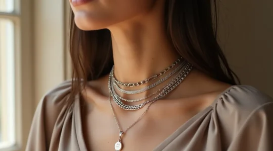 Die bewährte 3-Ebenen-Regel bietet Orientierung: Kombinieren Sie drei Ketten unterschiedlicher Länge – beispielsweise ein Choker (35-40 cm), eine mittellange Kette (45-50 cm) und ein längeres Pendant (60-70 cm). Diese Staffelung schafft harmonische Proportionen und vermeidet, dass sich die Ketten ineinander verheddern.